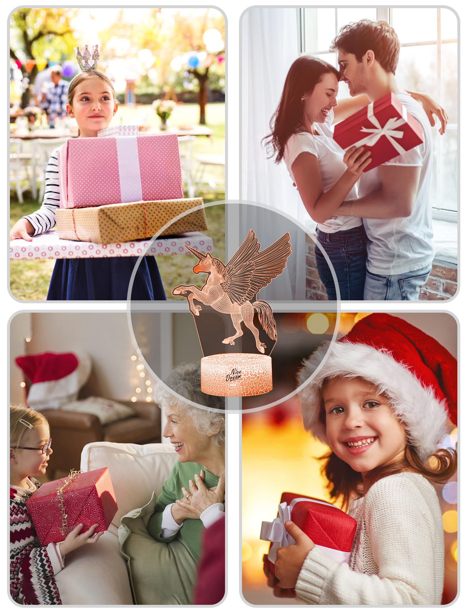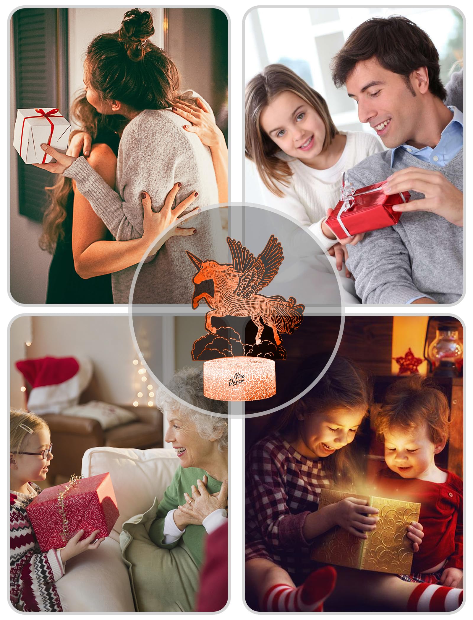 Introducing the 3D Dream Unicorn Nightlight – the ideal solution to transform your child’s bedroom into a peaceful, magical oasis. This nightlight provides: