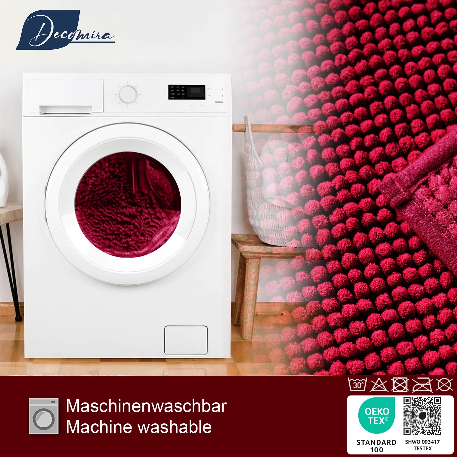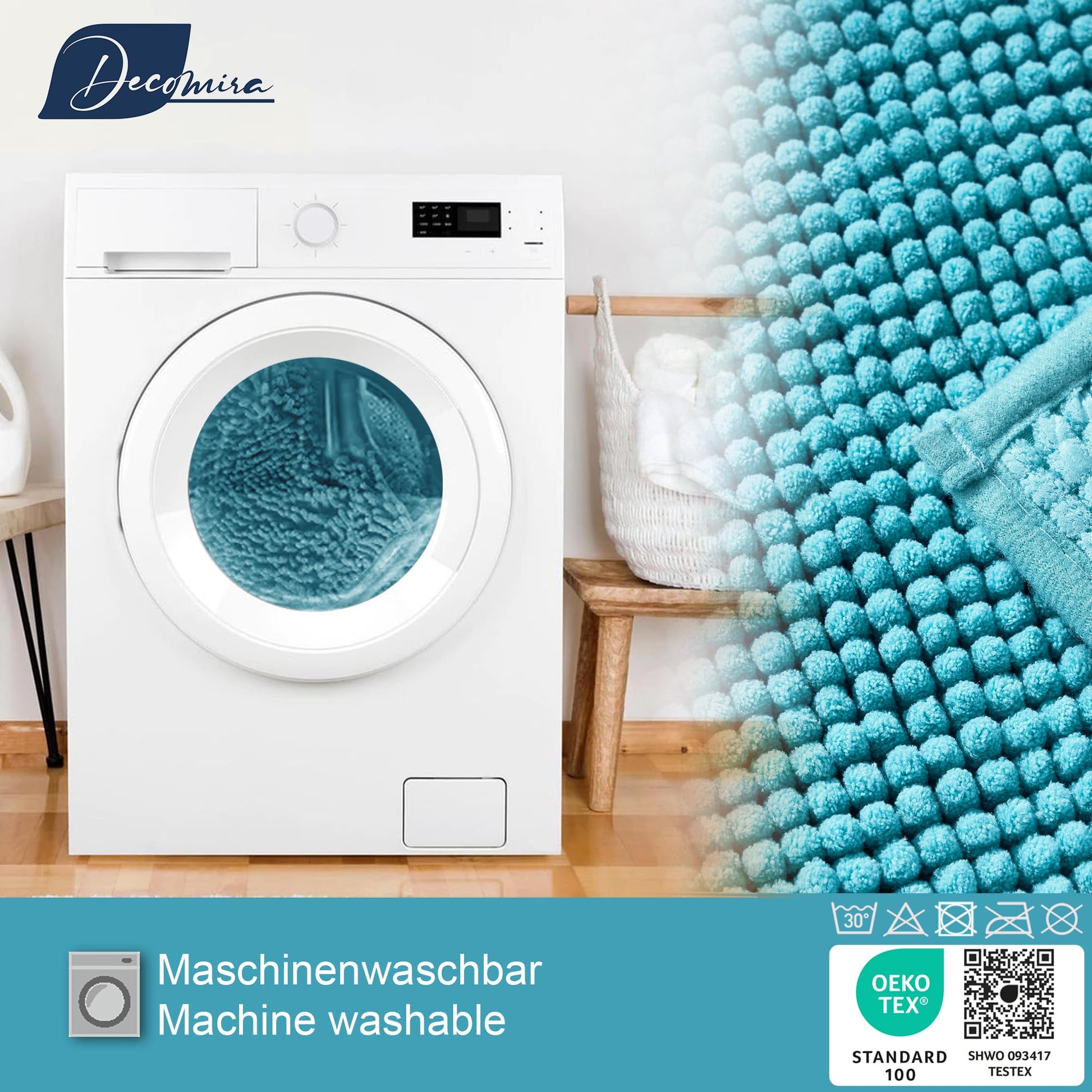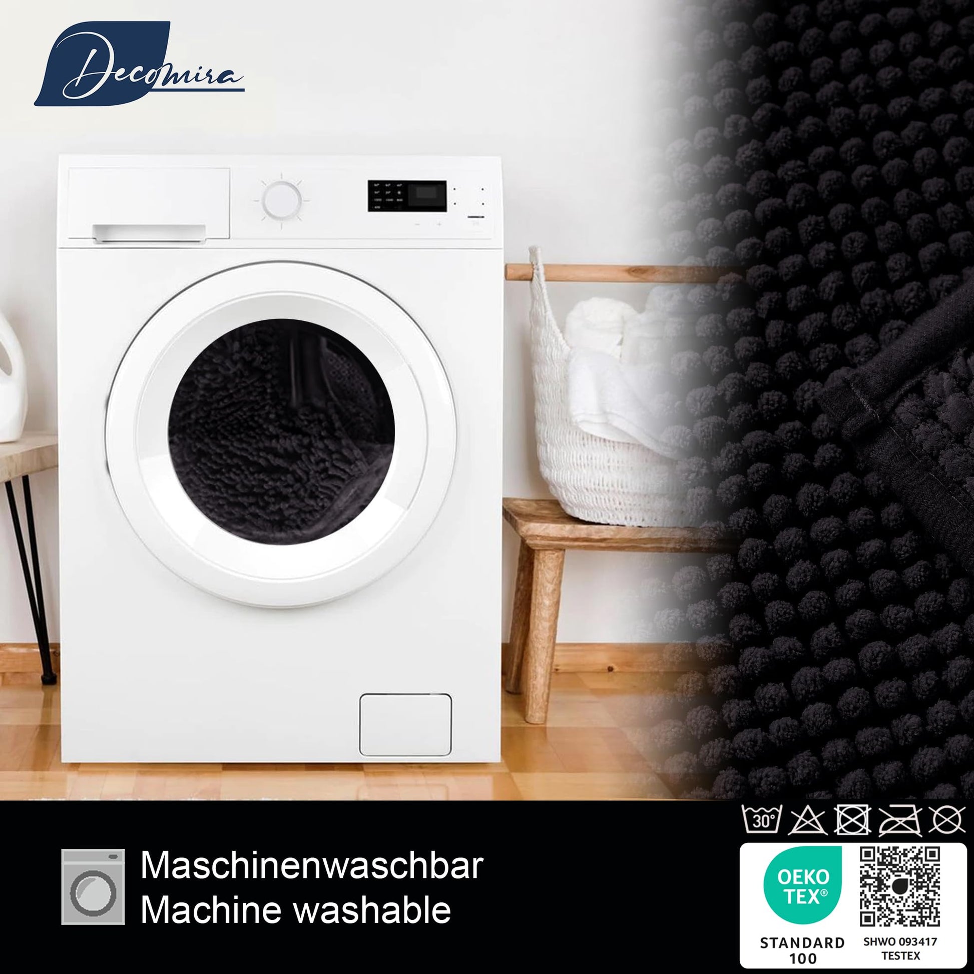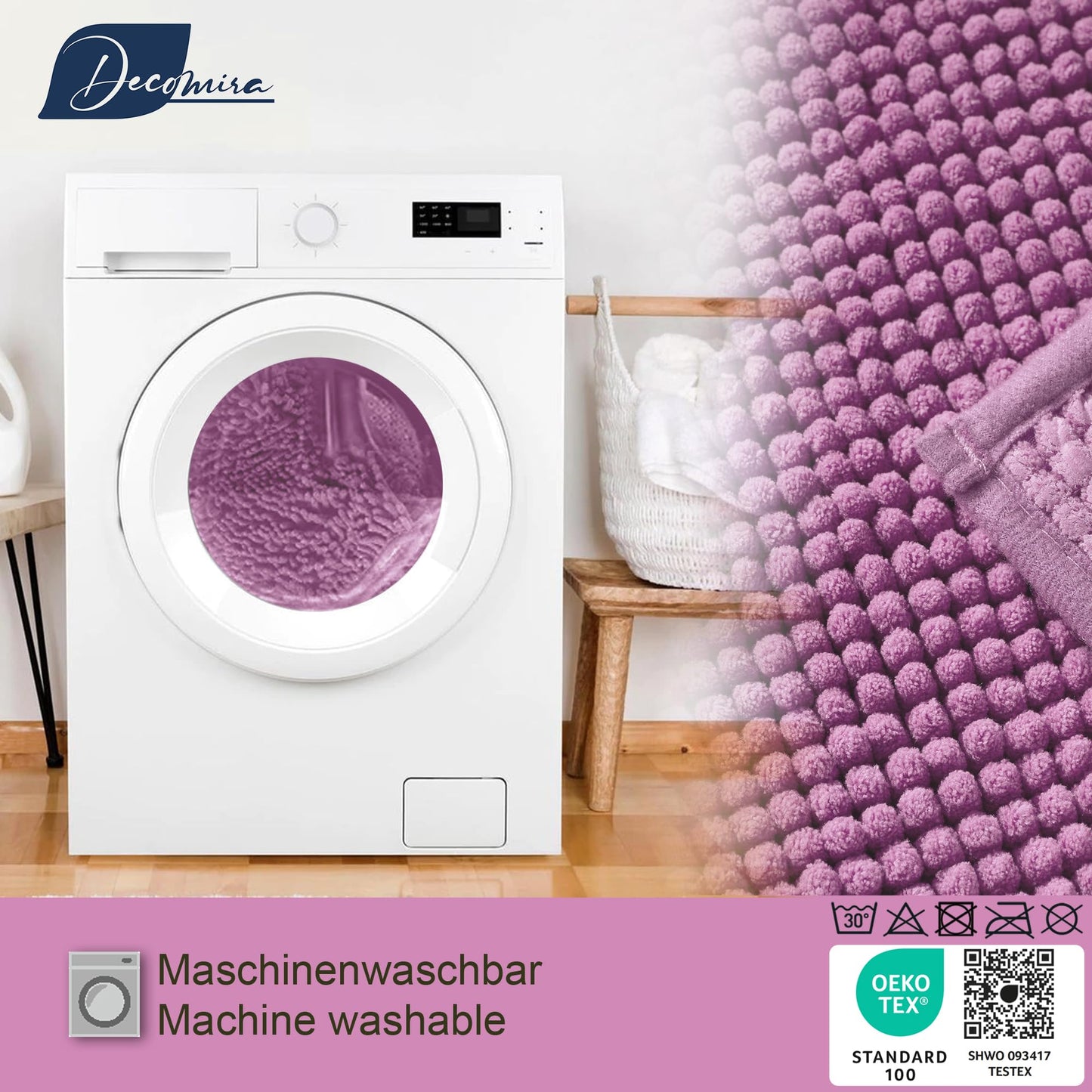 The Decomira bath mat is made of soft, absorbent chenille that dries quickly and feels gentle on skin. Its non-slip backing keeps it securely in place, reducing slip risks on wet floors. Designed for bathrooms, showers, or toilets, this durable mat maintains quality wash after wash and can be combined with matching sets. Machine washable at 30 °C, it’s practical and hygienic, providing a safe, comfortable surface while protecting your floors. Measuring 40 x 60 cm, it fits well in most bathroom spaces.