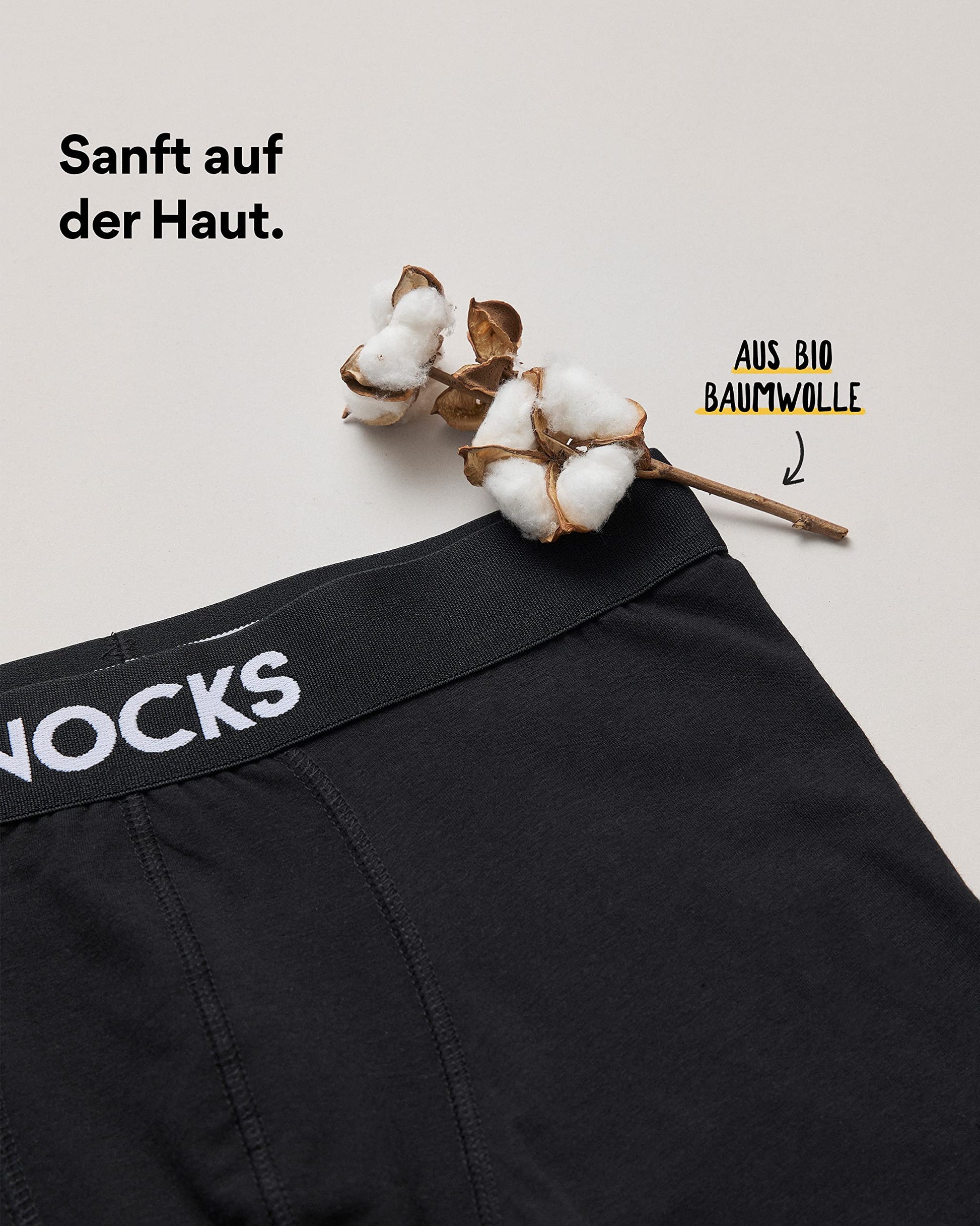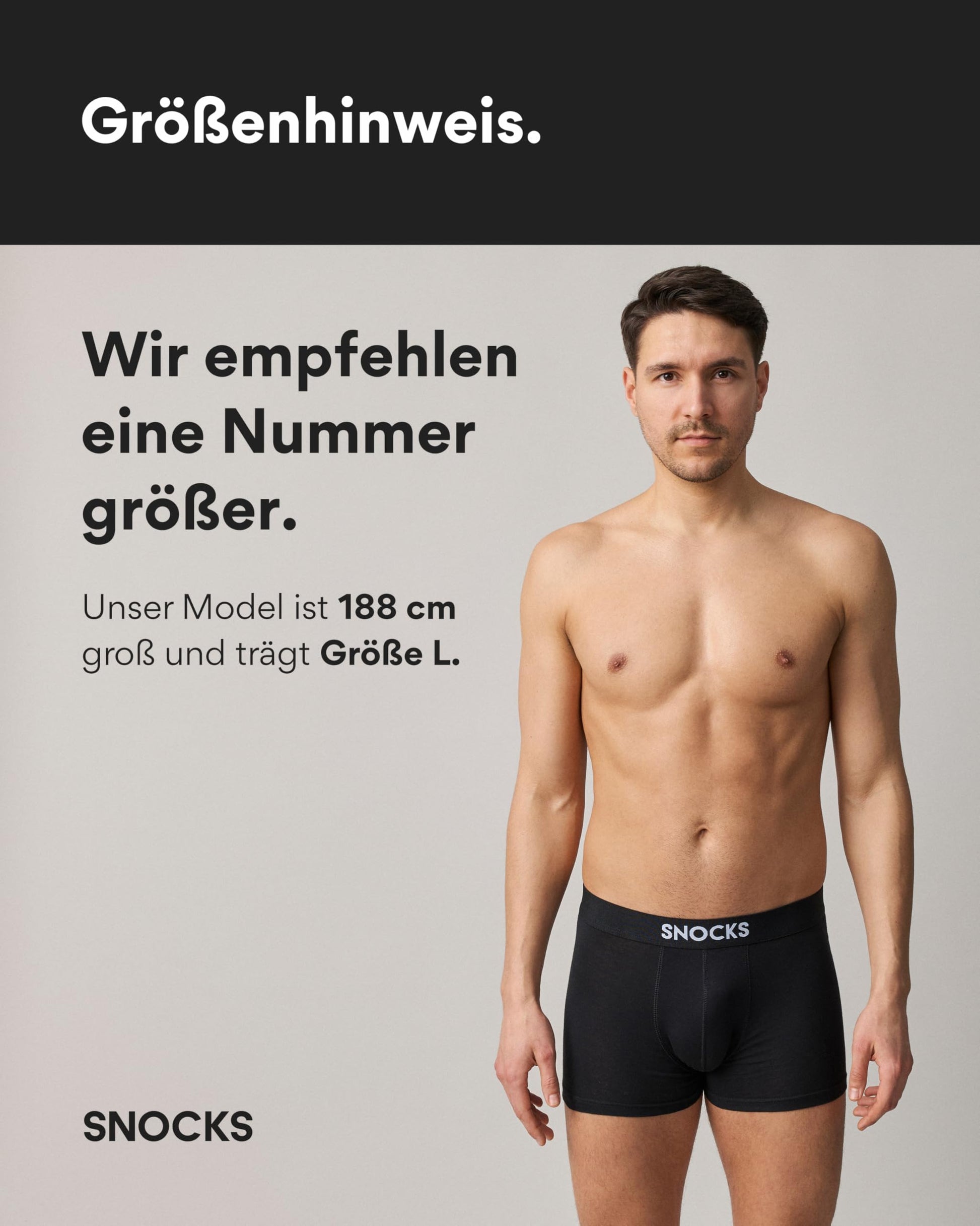 These Snocks men's boxer shorts come in a pack of six, made from organic cotton for comfort and sustainability. They feature an elastic waistband that prevents pinching and ensure a perfect fit without slipping. The label is printed inside to avoid irritation. Packaged plastic-free, these boxers carry the GOTS certification, confirming organic and transparent production. Machine washable and available in sizes S to 4XL—consider sizing up for the best fit.