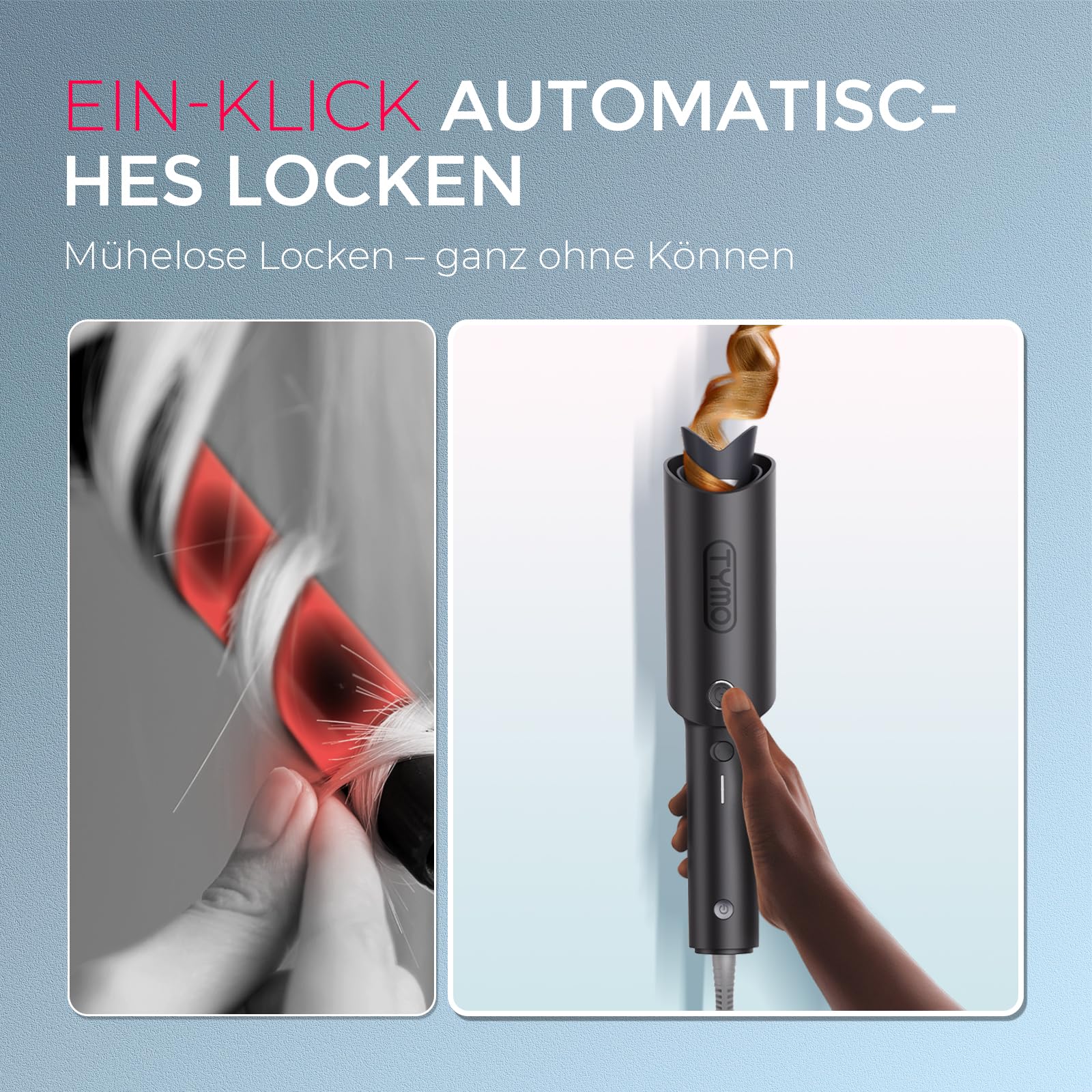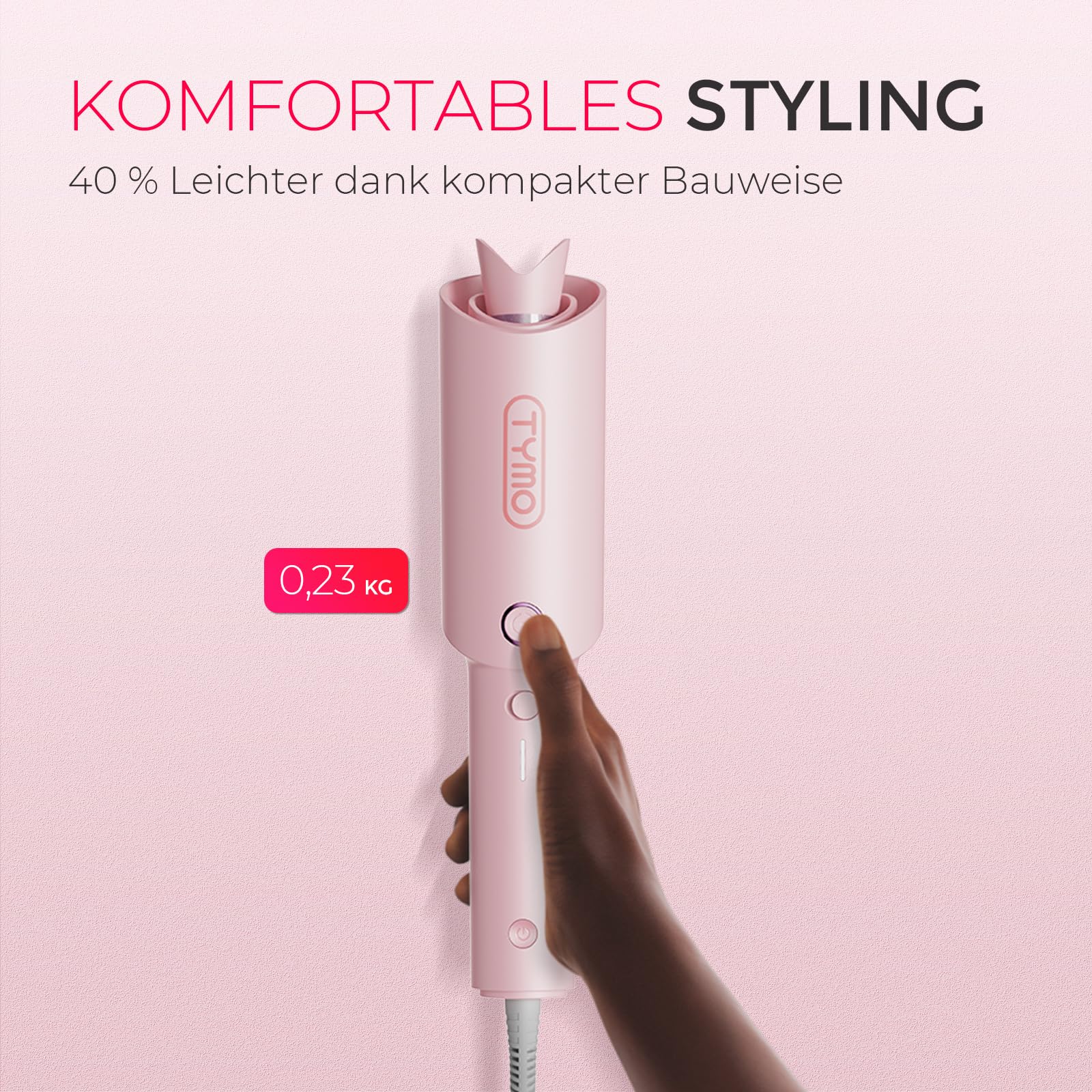The TYMO Curlpro Automatic Curling Iron creates flawless curls quickly with its dual-direction automatic rotation. Featuring advanced tourmaline ceramic technology, it reduces static and adds shine while protecting hair health with three adjustable heat settings from 160°C to 210°C. The anti-tangle and double-layer heat protection design ensure safe, smooth styling without burns or snags. Fast heating in 10 seconds and a 360° swivel cord make it convenient for at-home or travel use. Lightweight and equipped with automatic shut-off, this curling iron combines ease, safety, and professional-quality results.
